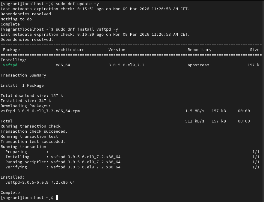 sudo dnf install vsftpd -y