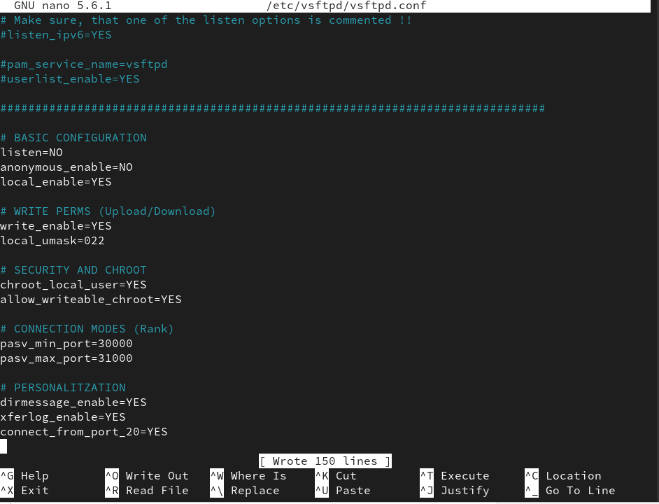sudo nano /etc/vsftpd/vsftpd.conf