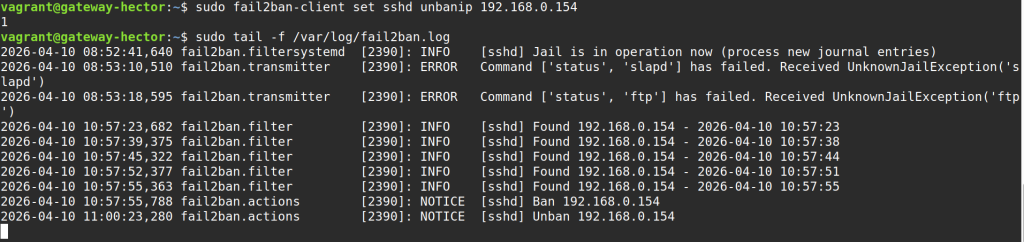 - bantime -> El temps que deixa a una IP sense poder accedir al SSH d’aquesta màquina.