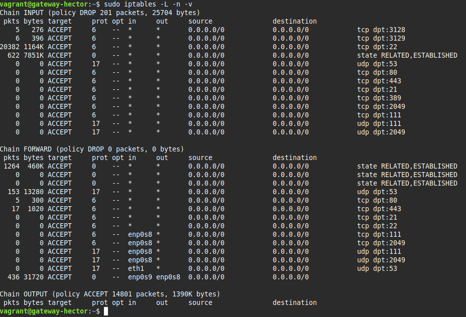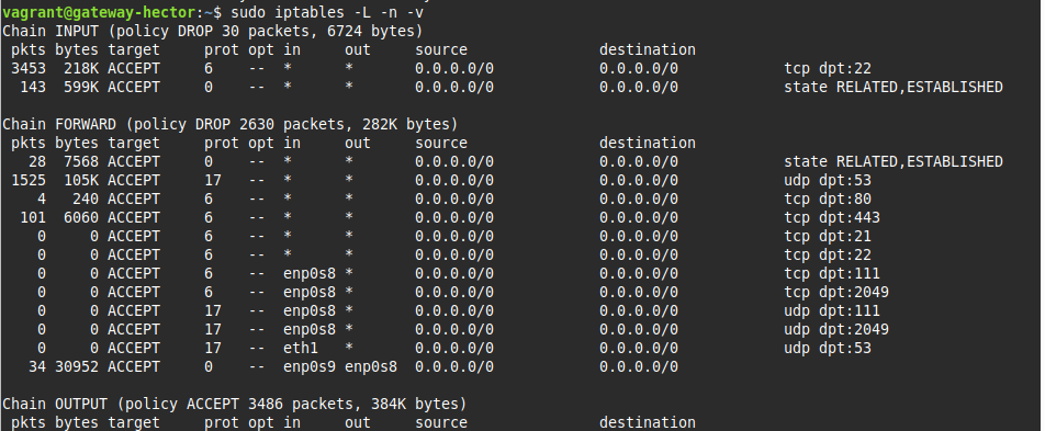 enp0s9Objectiu: Blindar el router i permetre només els serveis essencials per a la resta de servidors (DNS, Web, FTP, LDAP i NFS).