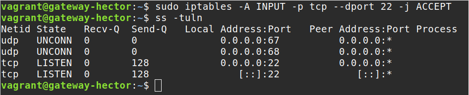 sudo iptables -A INPUT -p tcp --dport 22 -j ACCEPT