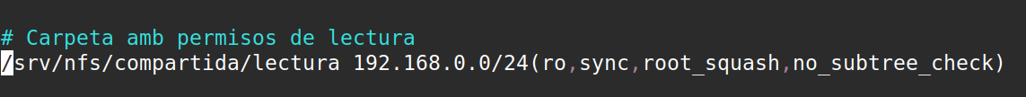 /srv/nfs/compartida/lectura 192.168.0.0/24(ro,sync,root_squash,no_subtree_check)