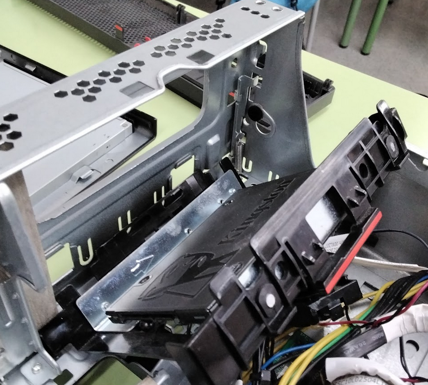 Amb els clips de dalt i l'assegurem perquè no es mogui per fer les connexions. Fem servir un SSD de 128 GB Kingston