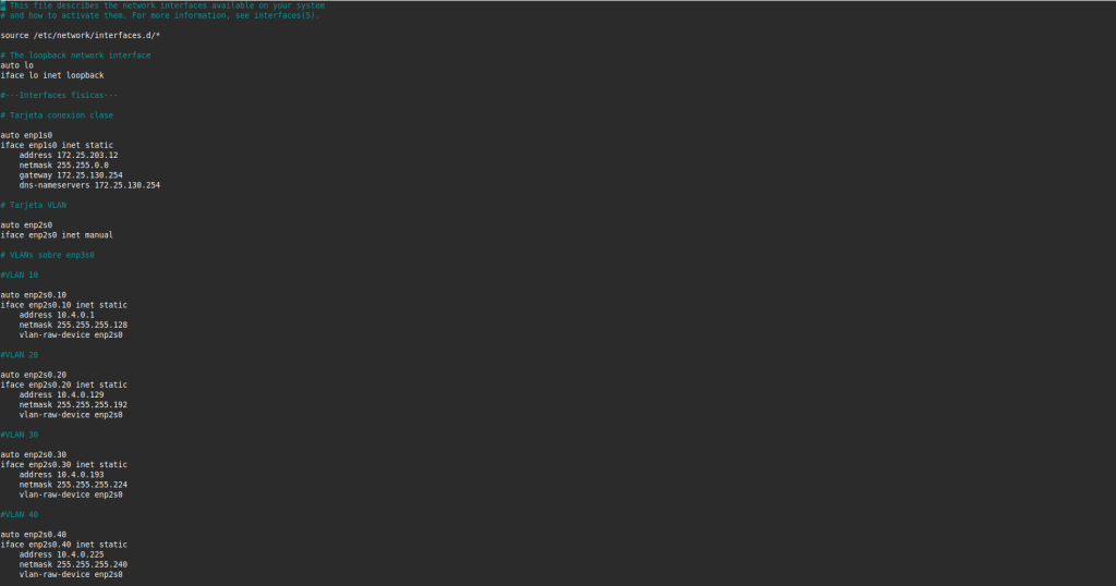 Fet aixo, editarem la configuració principal i le direm al servei com volem que treballin aquestes VLAN.