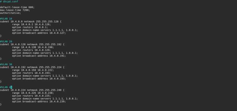 subnet 10.4.0.0 netmask 255.255.255.128 {